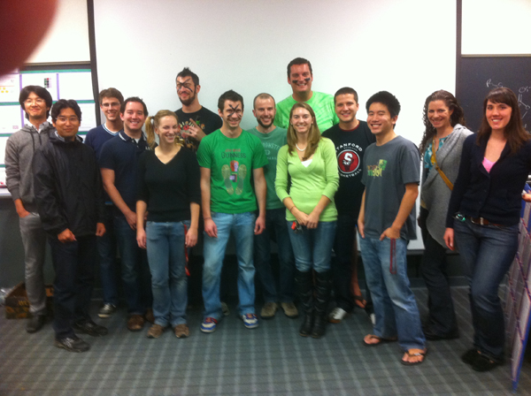 ![]() 2011 Wender Group Open House A welcome party for first year graduate students. Fuyuhiko Inagaki, Yasayuki Ogawa, Magnus Pfaffenbach, Brian Loy, Katie Near, Daryl Staveness, Brian Trantow, Allan Gamble, Chris Lipski, Erika Geihe, Dennis Fournogerakis, Micah Maetani, Liz Beans, Jennifer Mattler |