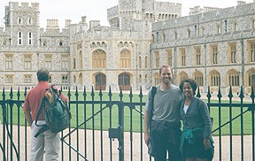 The Queen's apartments are behind Jay and Angela. The other side of the Queen's Apartments and the garden are behind me and Jay. For more Windsor facts and pictures, visit the royal residences web site. After a long day of touring the State Apartments, it's good to