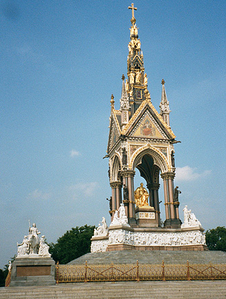 We visited the Albert Memorial (commissioned by Queen Victoria to commemorate her late consort) during our walk through Kensington Gardens. The weather was great at this point. (Later in the day this would change.) You can read more about the Albert Memorial. |