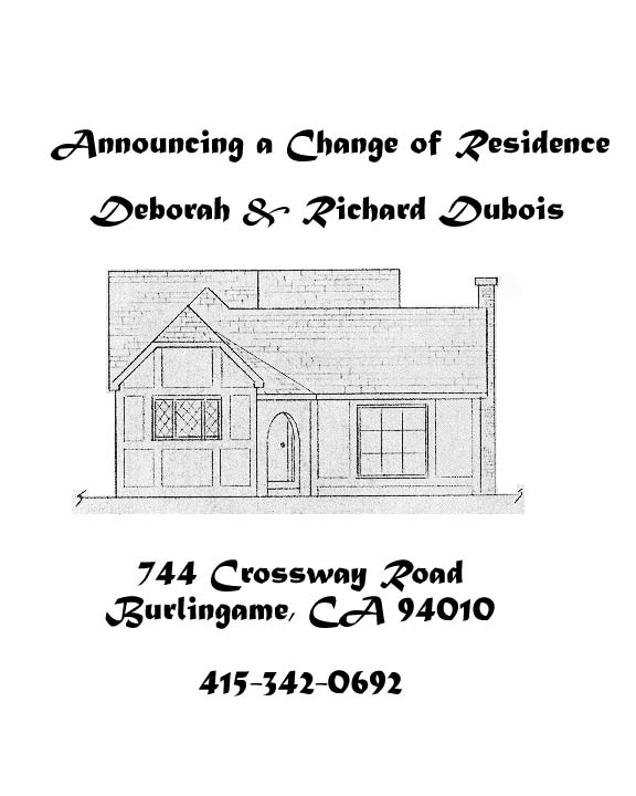 Hey! We just bought a new house (1/7/96), again in Burlingame.