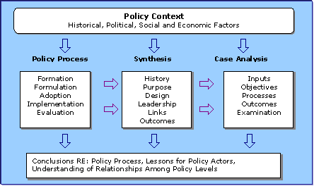 This policy context element is concerned with the historical, social, and economic inputs related to the policys origin, such how the awareness of a new policy or a change in an existing one was created. Included also were political inputs, such as the governance structure for higher education that was present in a state or the original legislation or political action leading to the development of an assessment policy. The relationships and communications among the governing agencies, the state governments, and the institutions are also key factors in understanding the policy context.