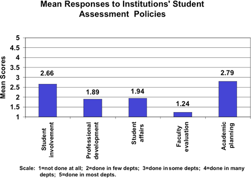 Thus, we conclude that most institutions have only a partially institutionalized student assessment on their campuses. Some of the general findings: External Influences of Student Assessment (For a more detailed examination of the various findings